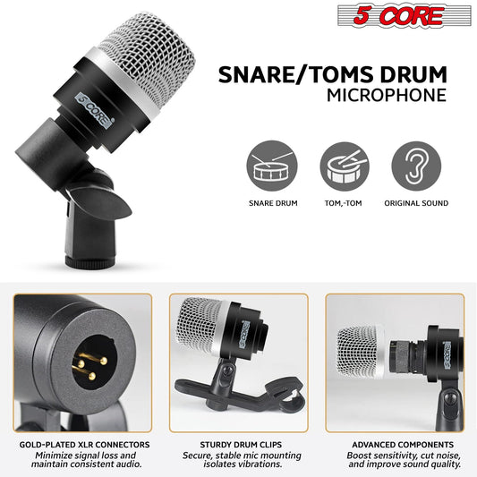 5Core Drum Mic Kit 7 Pcs Kick BassTom Snare Dynamic Microphone