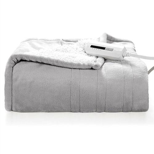 Heated Electric Sherpa Throw Blanket in Grey/White