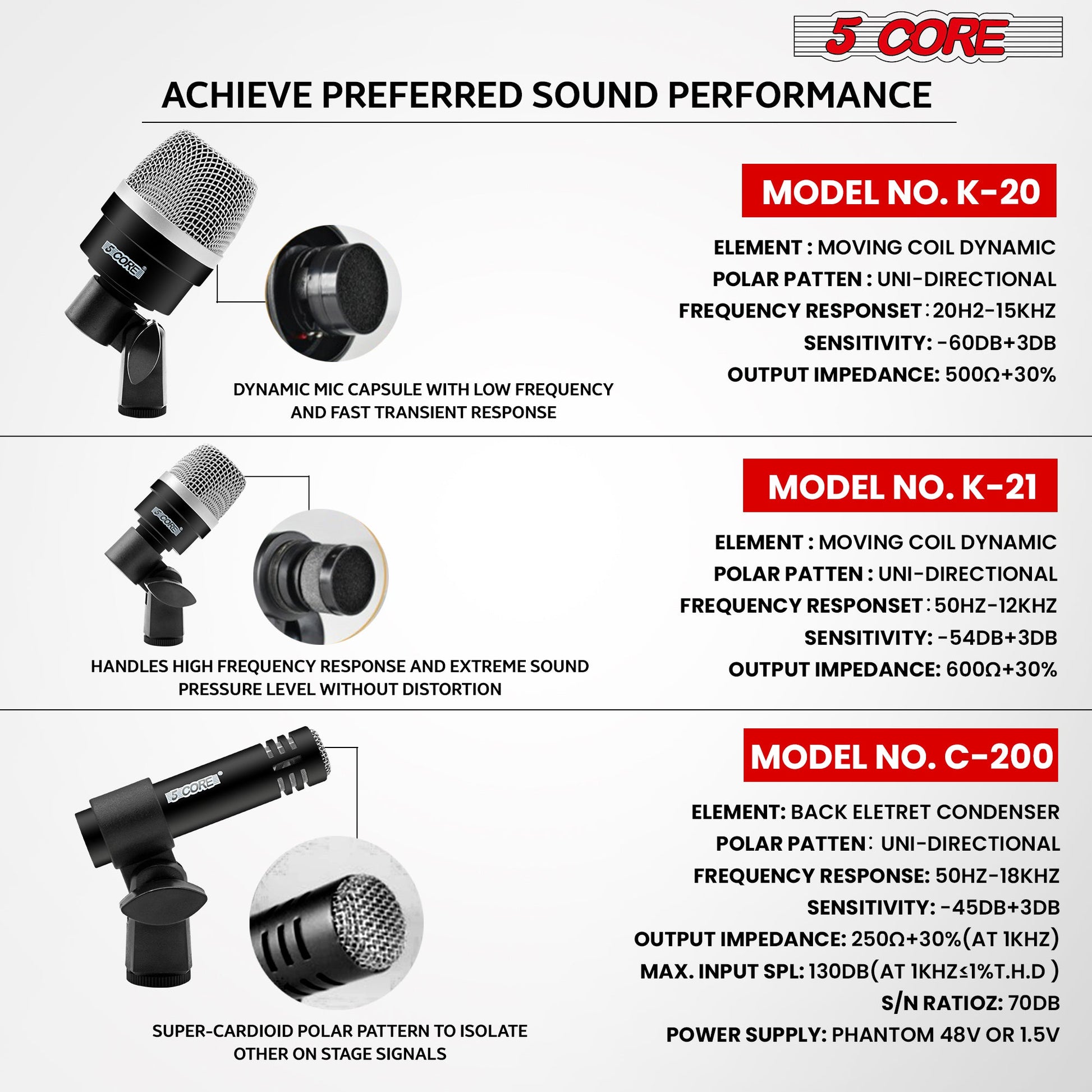 HIGH PERFORMANCE - Each instrument mic engineered to capture low-end punch to sensitive /flat sound.