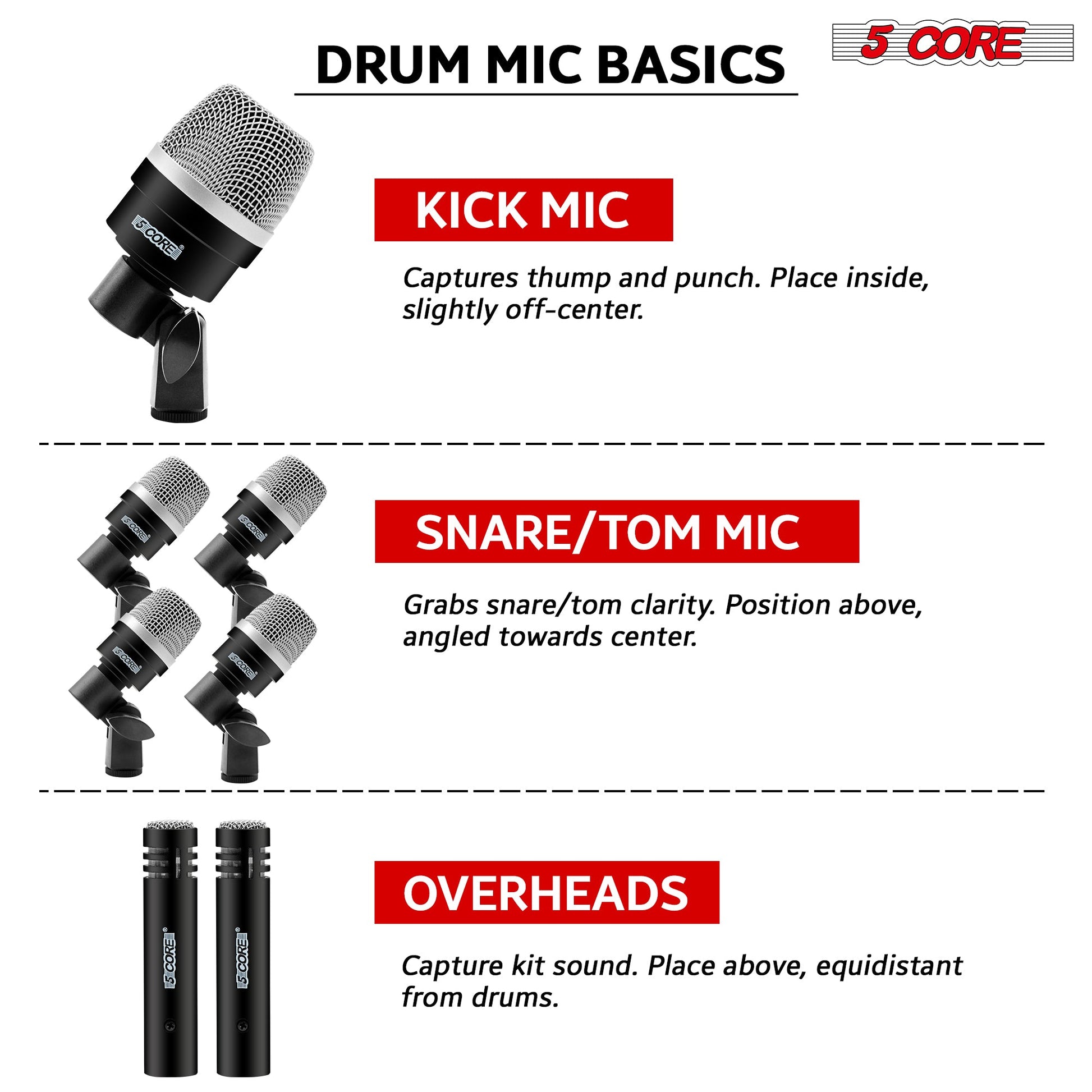 5Core Drum Mic Kit 7 Pcs Kick BassTom Snare Dynamic Microphone