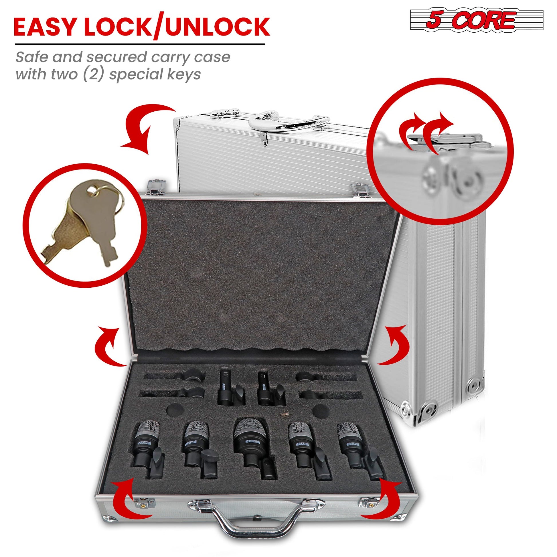 The drum mics and accessories come in a professional aluminum case, making it easy to carry with style. |